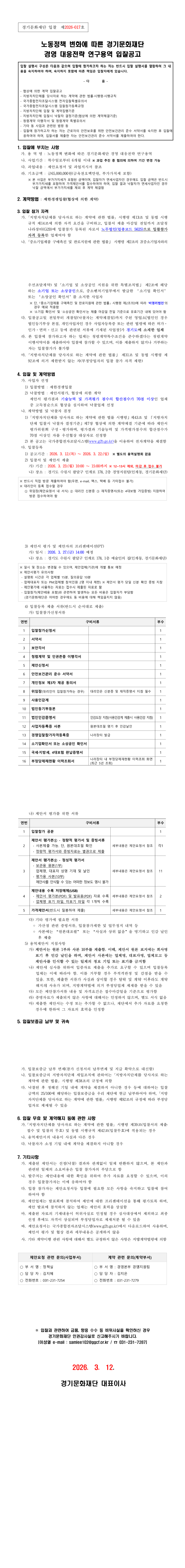 노동정책 변화에 따른 경기문화재단 경영 대응전략 연구용역 |