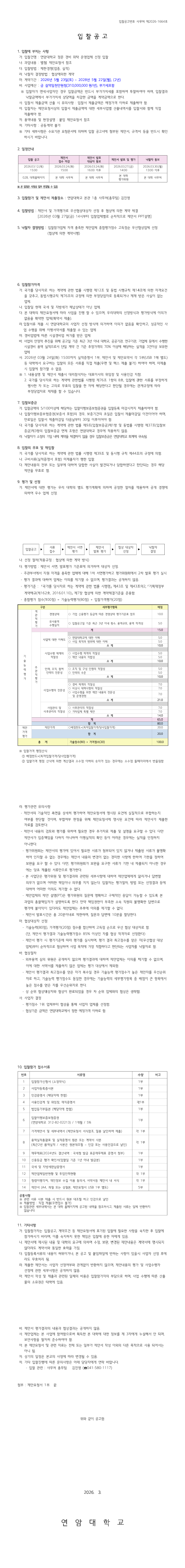 연암대학교 정문 경비 위탁 운영업체 선정 입찰 |