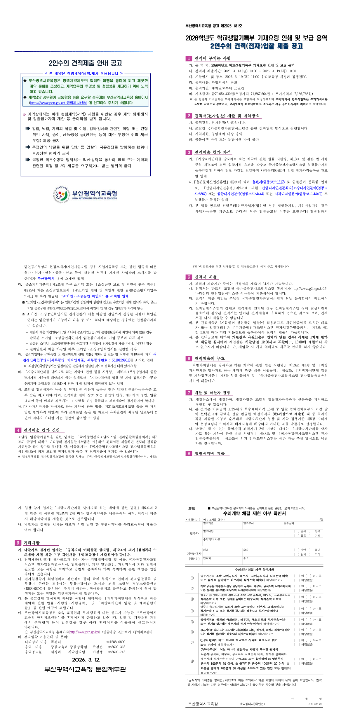 2026학년도 학교생활기록부 기재요령 인쇄 및 보급 용역 |