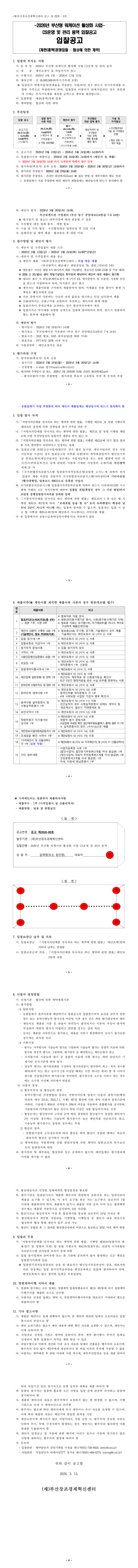 2026년 부산형 워케이션 활성화 사업 CS운영 및 관리 용역 입찰공고 |