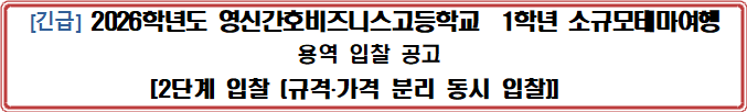 2026학년 영신간호비즈니스고등학교 1학년 소규모테마여행 위탁 용역 업체를 선정하기 위하여 다음과 같이 공고합니다.