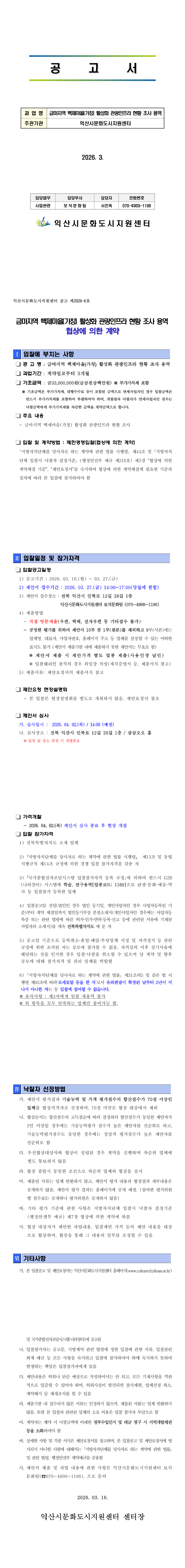 금마지역 백제마을(가칭) 활성화 관광인프라 현황 조사 용역 |