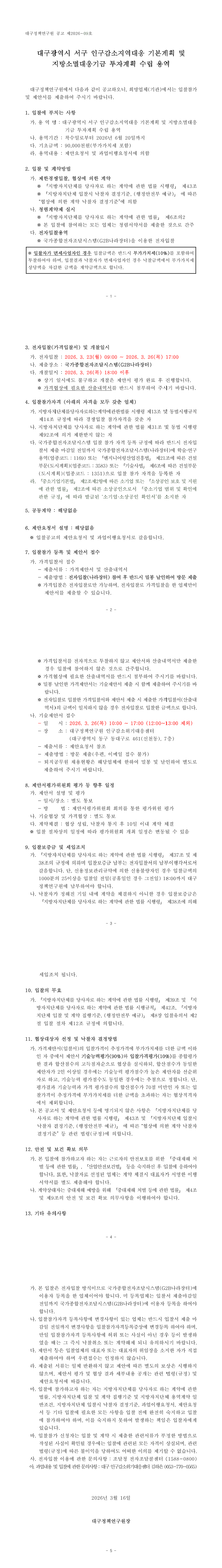 대구광역시 서구 인구감소지역대응 기본계획 및 지방소멸대응기금 투자계획 수립 용역 |