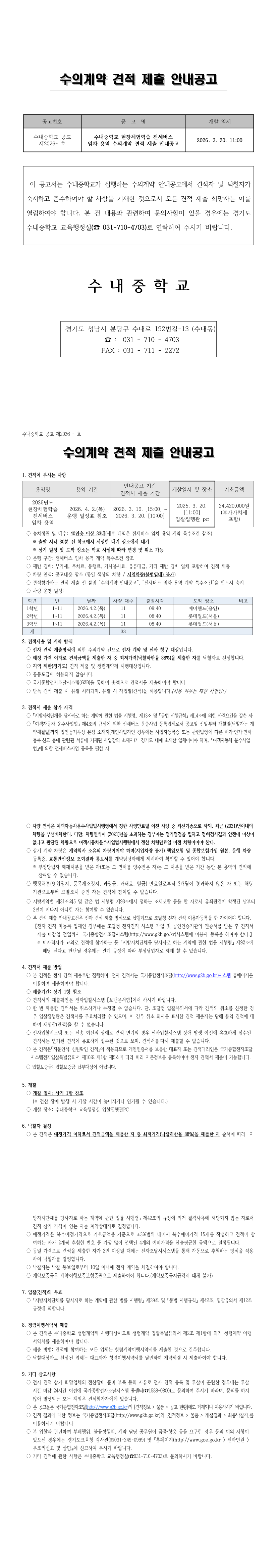 2026학년도 수내중학교 전학년 체험학습 버스 임차 용역 견적 제출 |