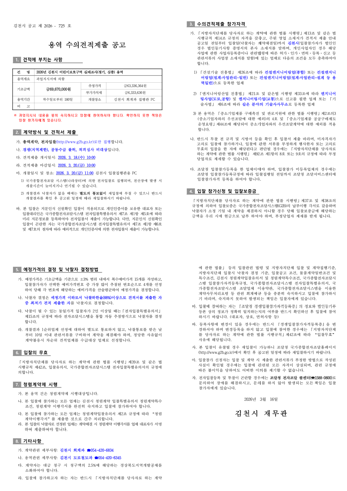 2026년 김천시 어린이보호구역 실태조사(정기, 심층) 용역 |