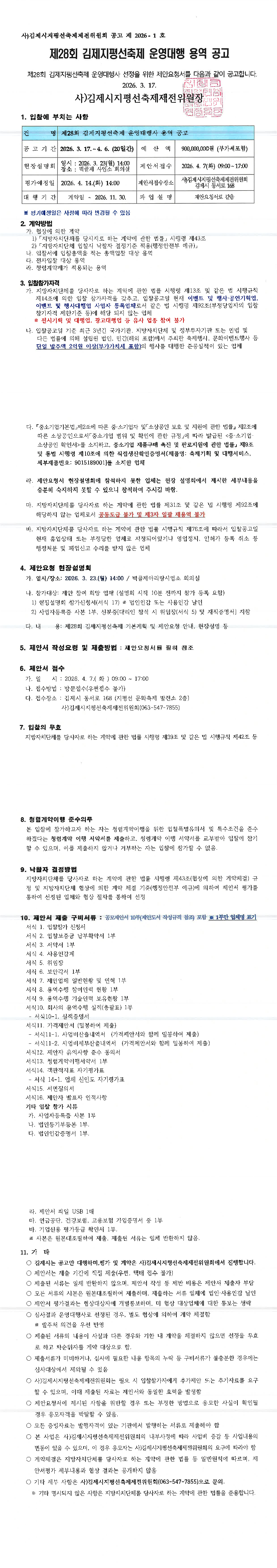 제28회 김제지평선축제 주관 대행사 선정 용역(협상에 의한 계약)(입찰대행) |