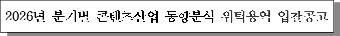 ㅇ 입찰건명 : 2026년 분기별 콘텐츠산업 동향분석