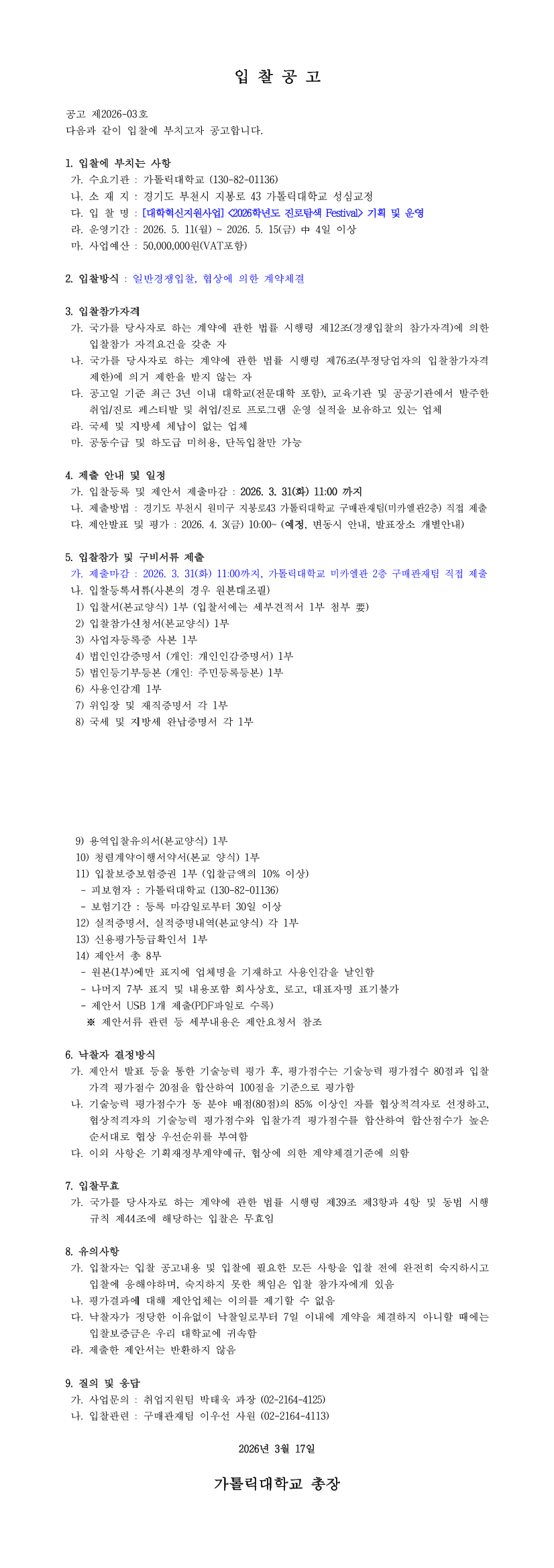 [대학혁신지원사업] 2026학년도 진로탐색 Festival 운영 업체 선정 |