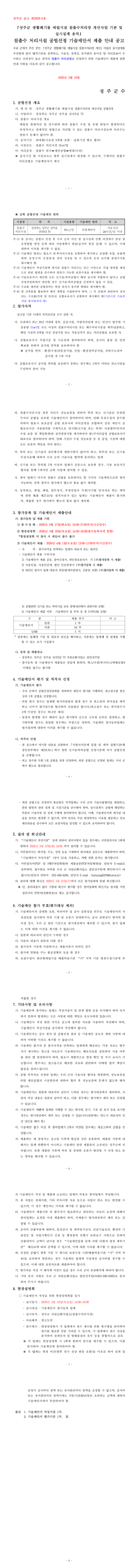 성주군 침출수 처리시설 공법선정 기술제안서 제출 안내 공고 |