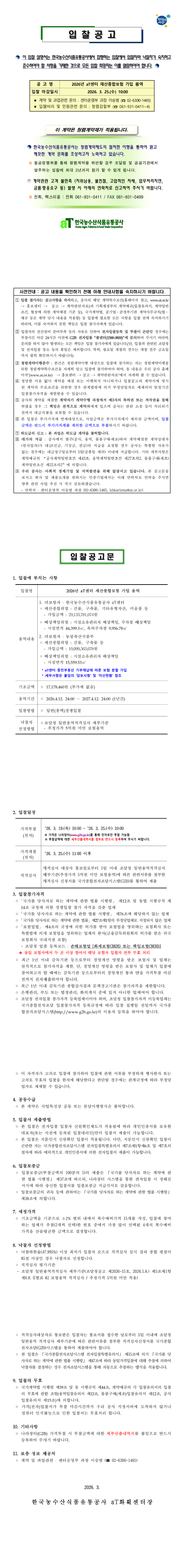 2026년 aT센터 재산종합보험 가입 용역 |