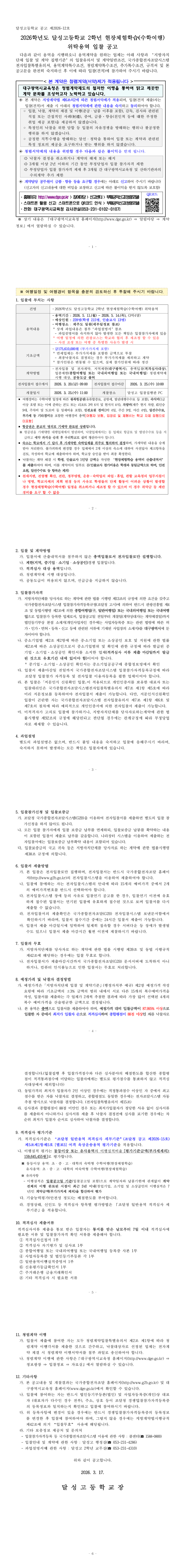 2026학년도 달성고등학교 2학년 현장체험학습(수학여행) 위탁용역 입찰 공고 |