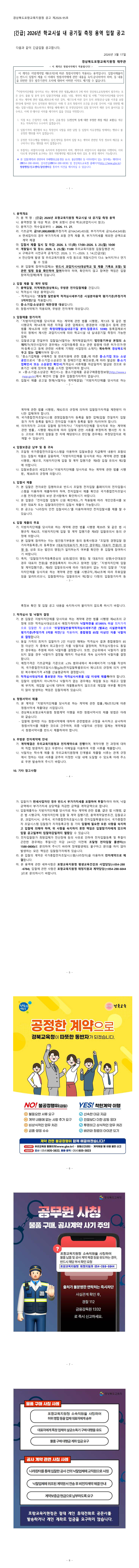 [긴급] 2026년 학교시설 내 공기질 측정 용역 |