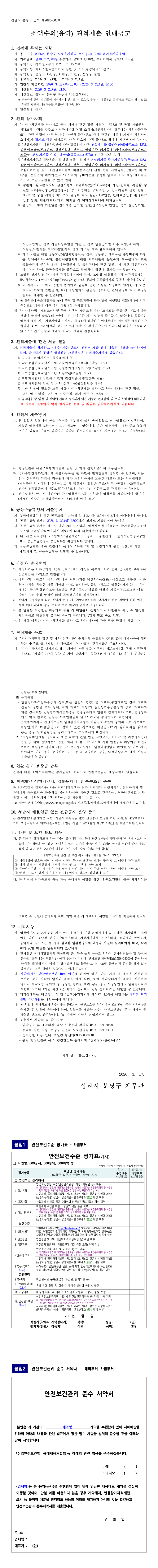 2026년 분당구 도로유지관리 보수공사(1구역) 폐기물처리용역 |
