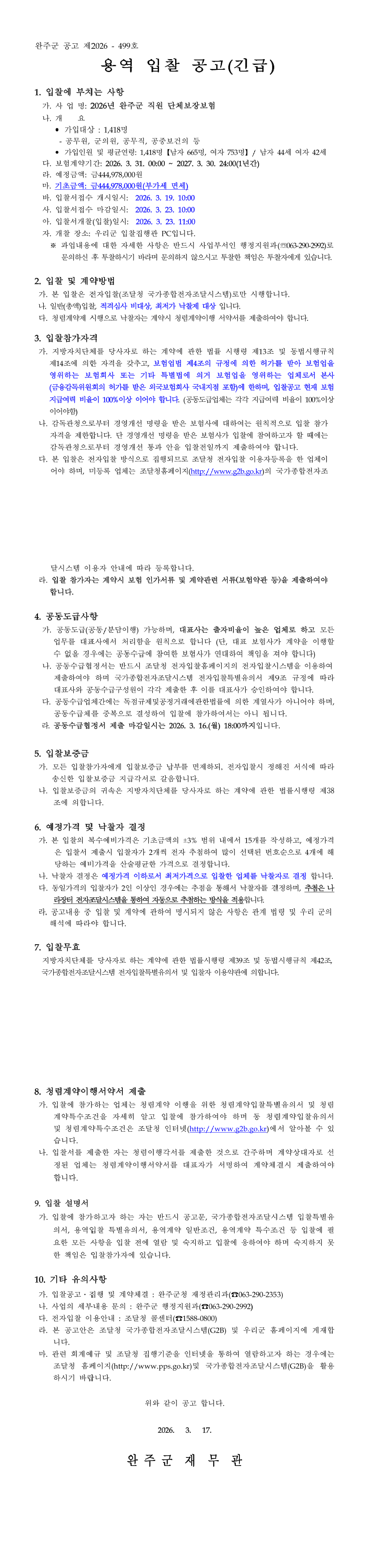 2026년 완주군 직원 단체보장보험 |