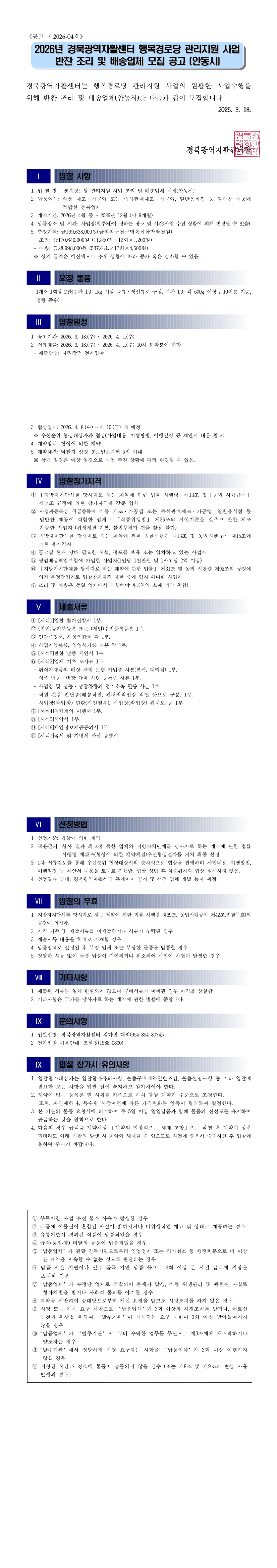 2026년 경북광역자활센터 행복경로당 관리지원 사업 조리 및 배송 업체 선정 입찰(안동시) |