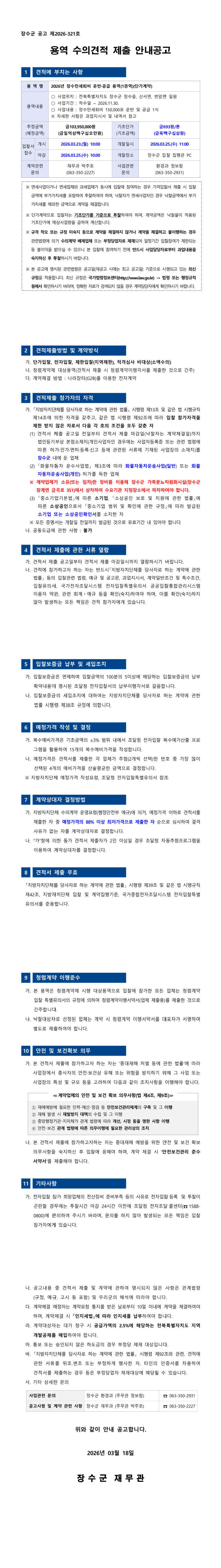 2026년 장수만세퇴비 운반·공급 용역(1권역)(단가계약) |