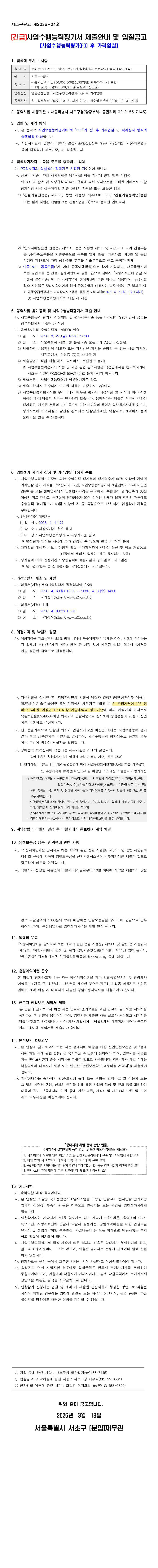 26~27년 서초구 하수도분야 건설사업관리(전문감리) 용역 |