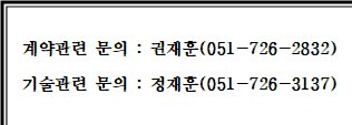 전화번호 : 051-726-3137 (정재훈 과장) [부재시 051-726-3131 (이병철 파트장)]