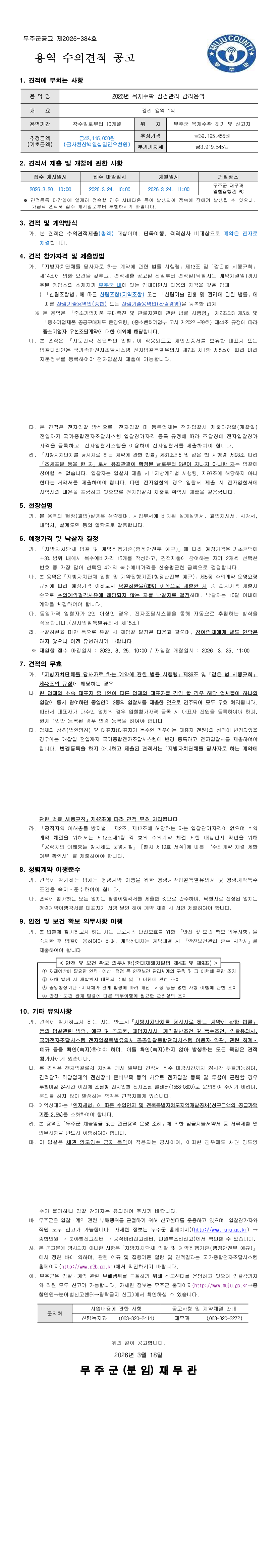 2026년 목재수확 점검관리 감리용역 |