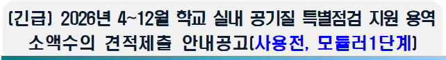 [긴급] 2026년 4~12월 학교 실내 공기질 특별점검 지원 용역(사용전, 모듈러1단계)