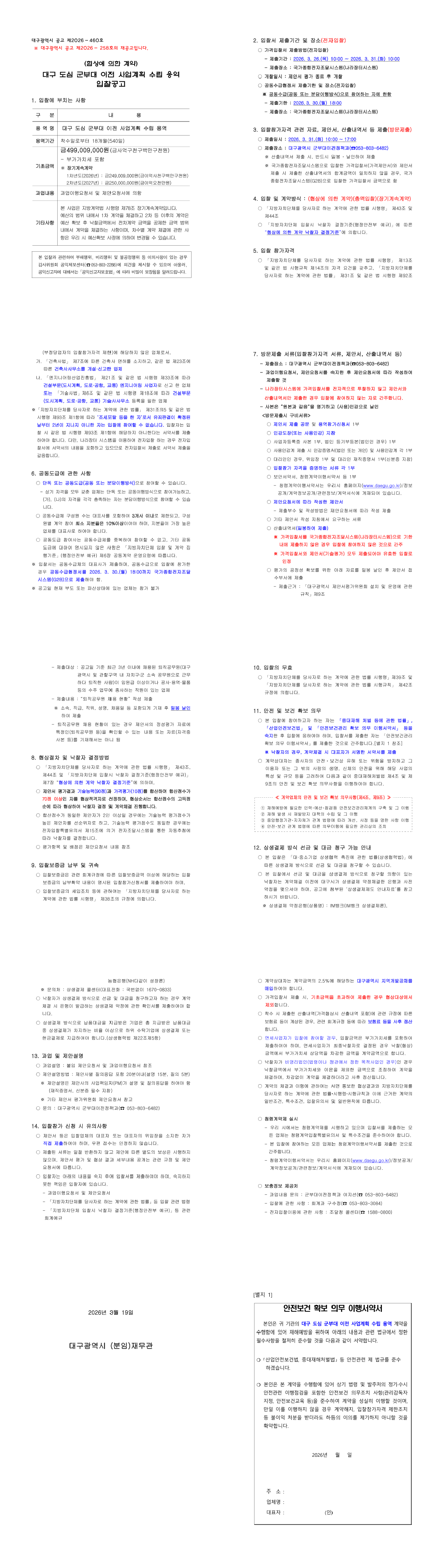 [입찰재공고] 대구 도심 군부대 이전 사업계획 수립 용역 |