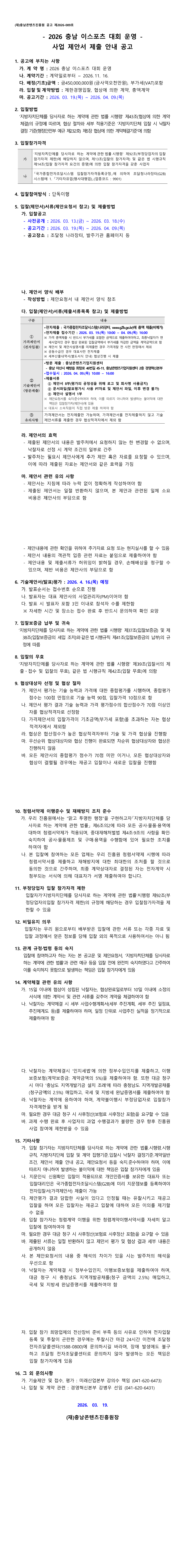 2026 충남 이스포츠 대회 운영 용역 |