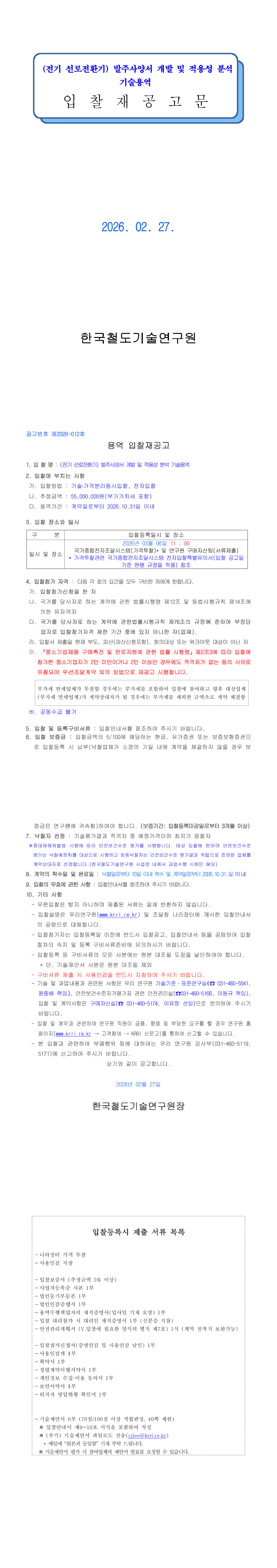 (전기 선로전환기) 발주사양서 개발 및 적용성 분석 기술용역 |