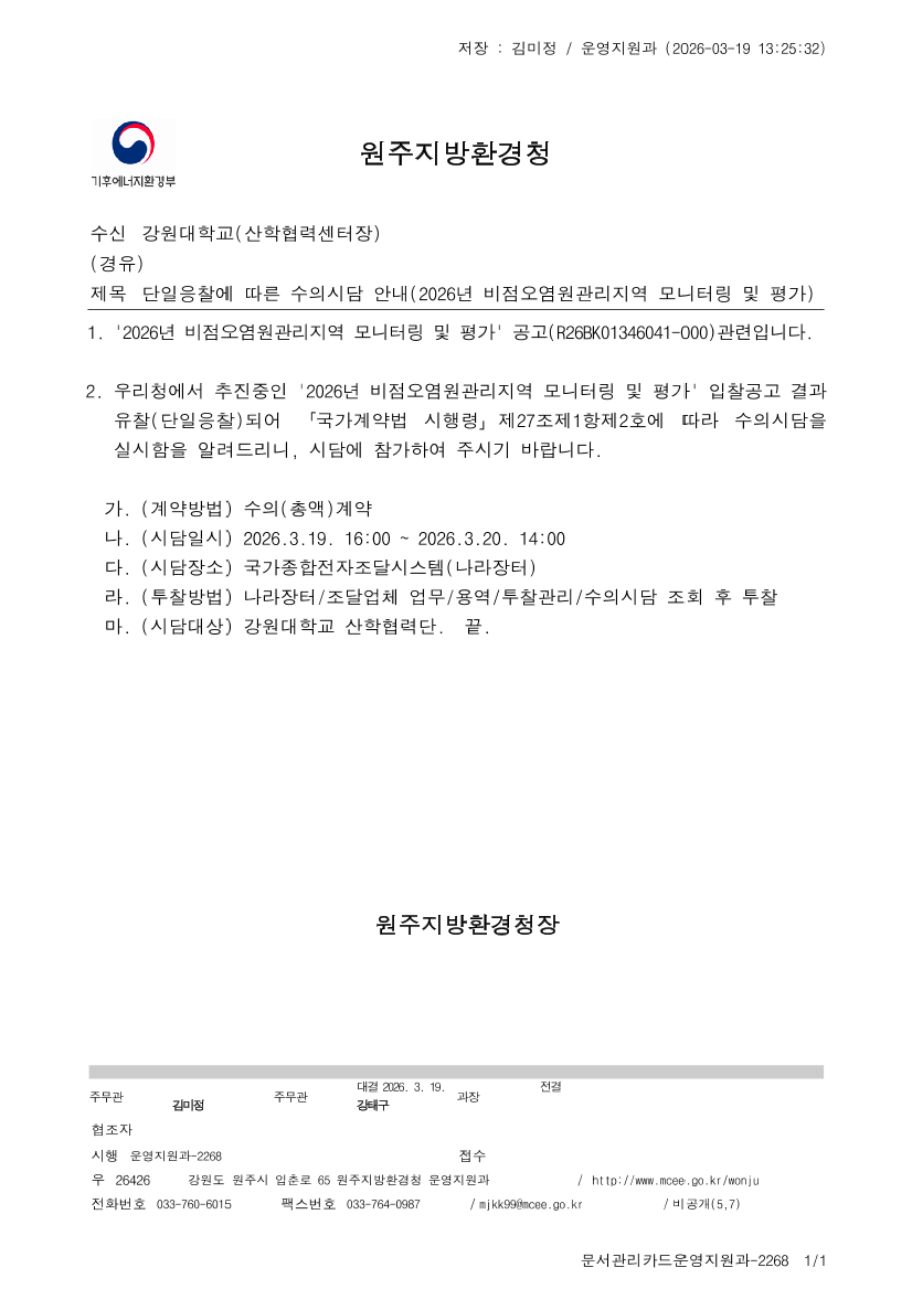 2026년 비점오염원관리지역 모니터링 및 평가 |