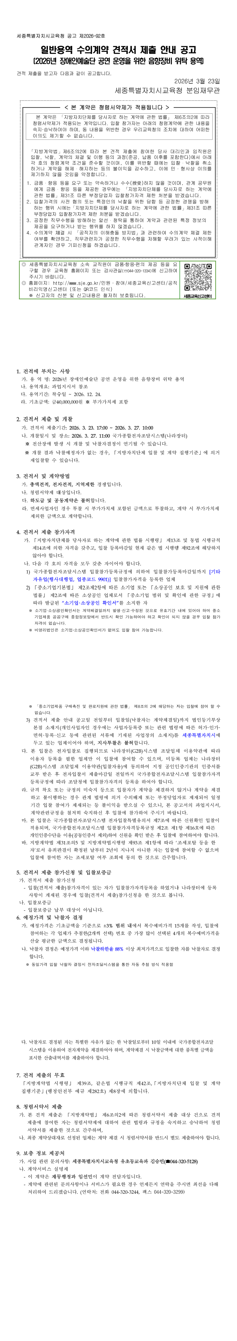 2026년 장애인예술단 공연 운영을 위한 음향장비 위탁 용역 |