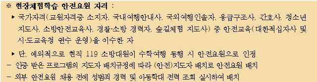 ※ 주의사항: 수련활동의 실시여부는 감염병 상황 및 긴급, 재난 천재지변 등의 사유에 따라 변경 또는 취소될 수 있으며, 취소에 따른 본 계약이 해지 될 수 있음을 숙지바랍니다.