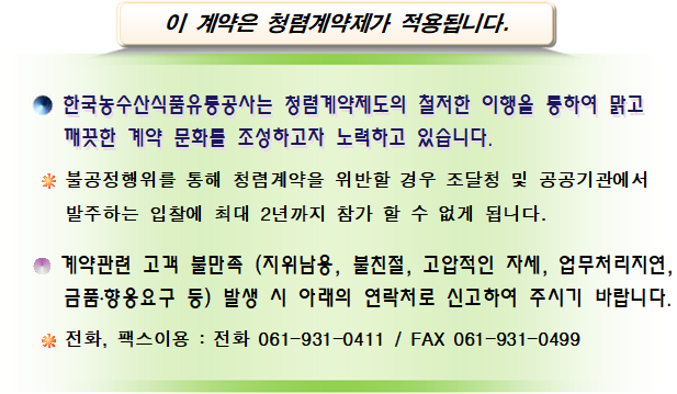 ✱ 입찰비리 및 민원관련 문의 : 청렴감찰부 (☎ 061-931-0411~4)