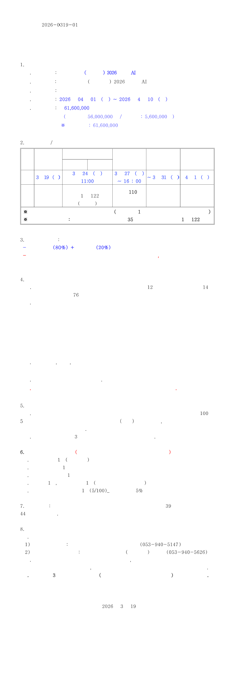 2026년도 첨단분야 혁신융합대학사업(인공지능) 슬기로운 새내기 인공지능 부트캠프 위탁용역 |