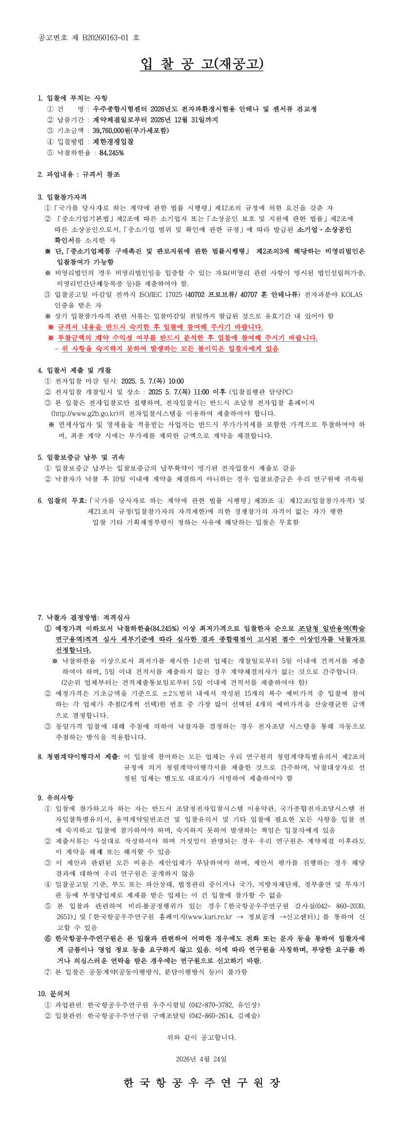 (재공고) 우주종합시험센터 2026년도 전자파환경시험용 안테나 및 센서류 검교정 |