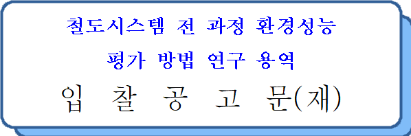 1. 입 찰 명 : 철도시스템 전 과정 환경성능 평가 방법 연구 용역