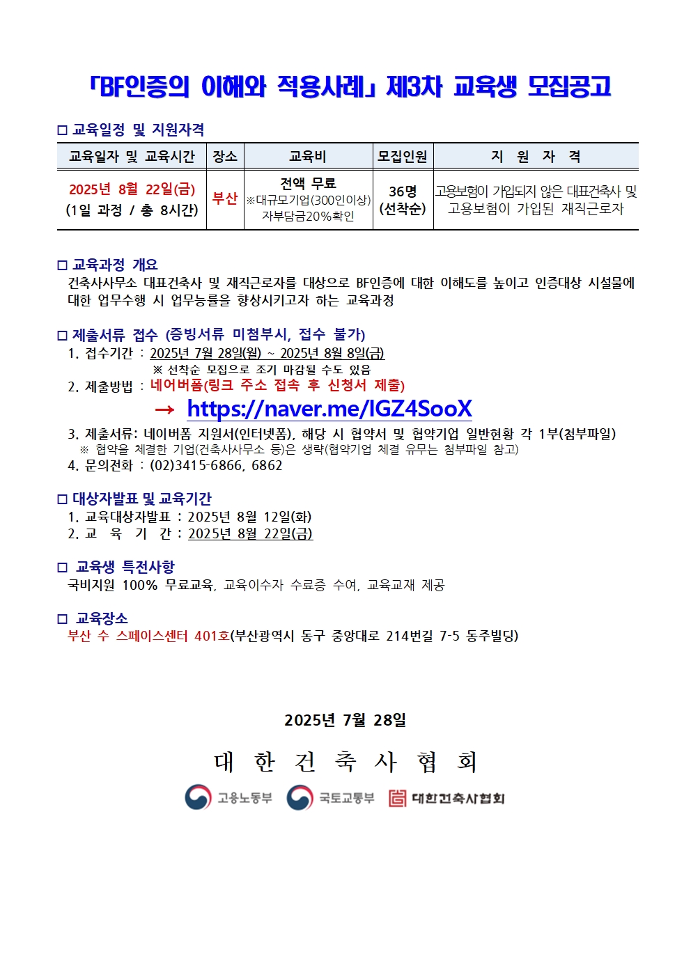 「BF인증의 이해와 적용사례」제3차 교육생 모집공고 (부산)