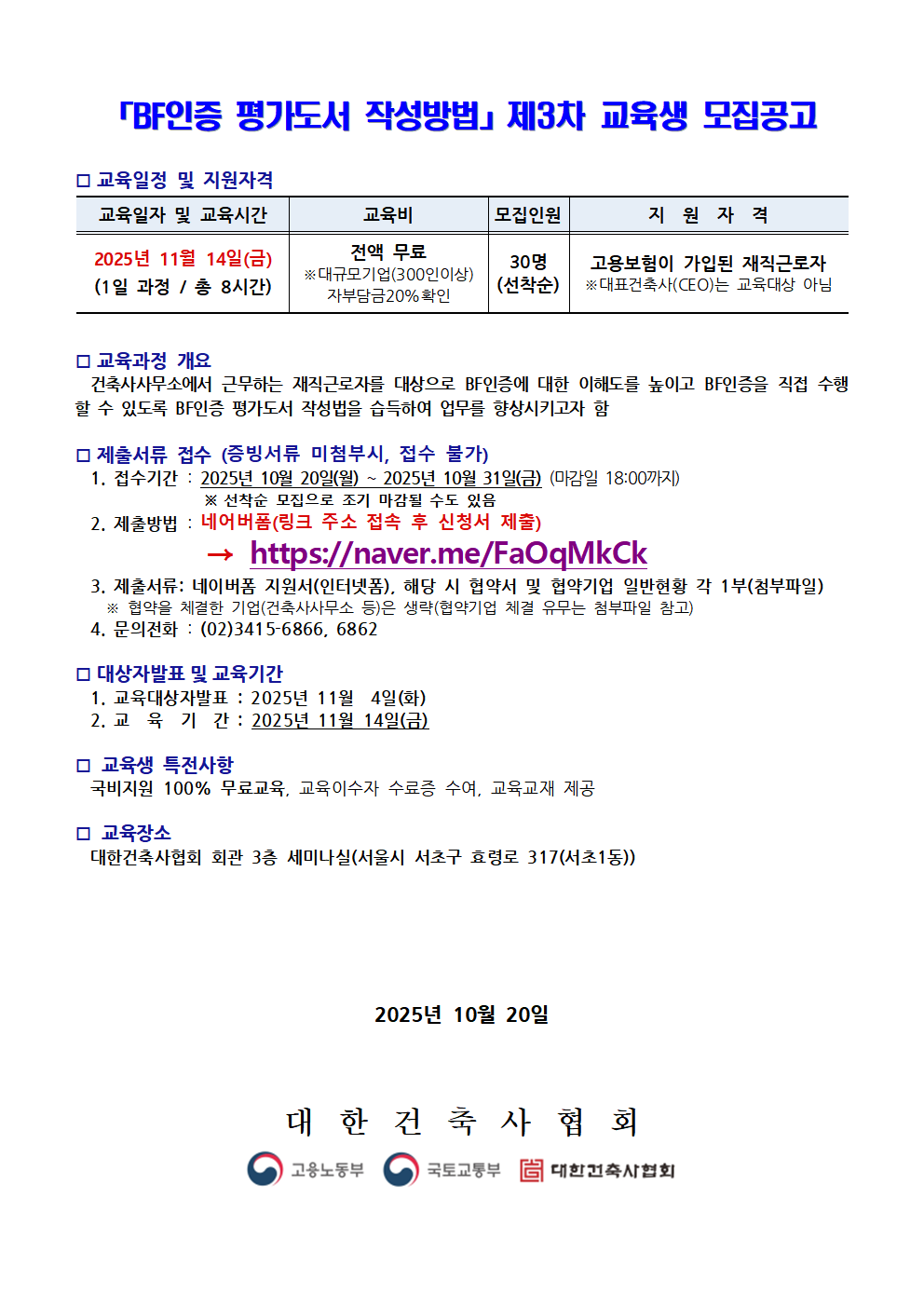 제3차「BF인증 평가도서 작성방법」교육생 모집공고