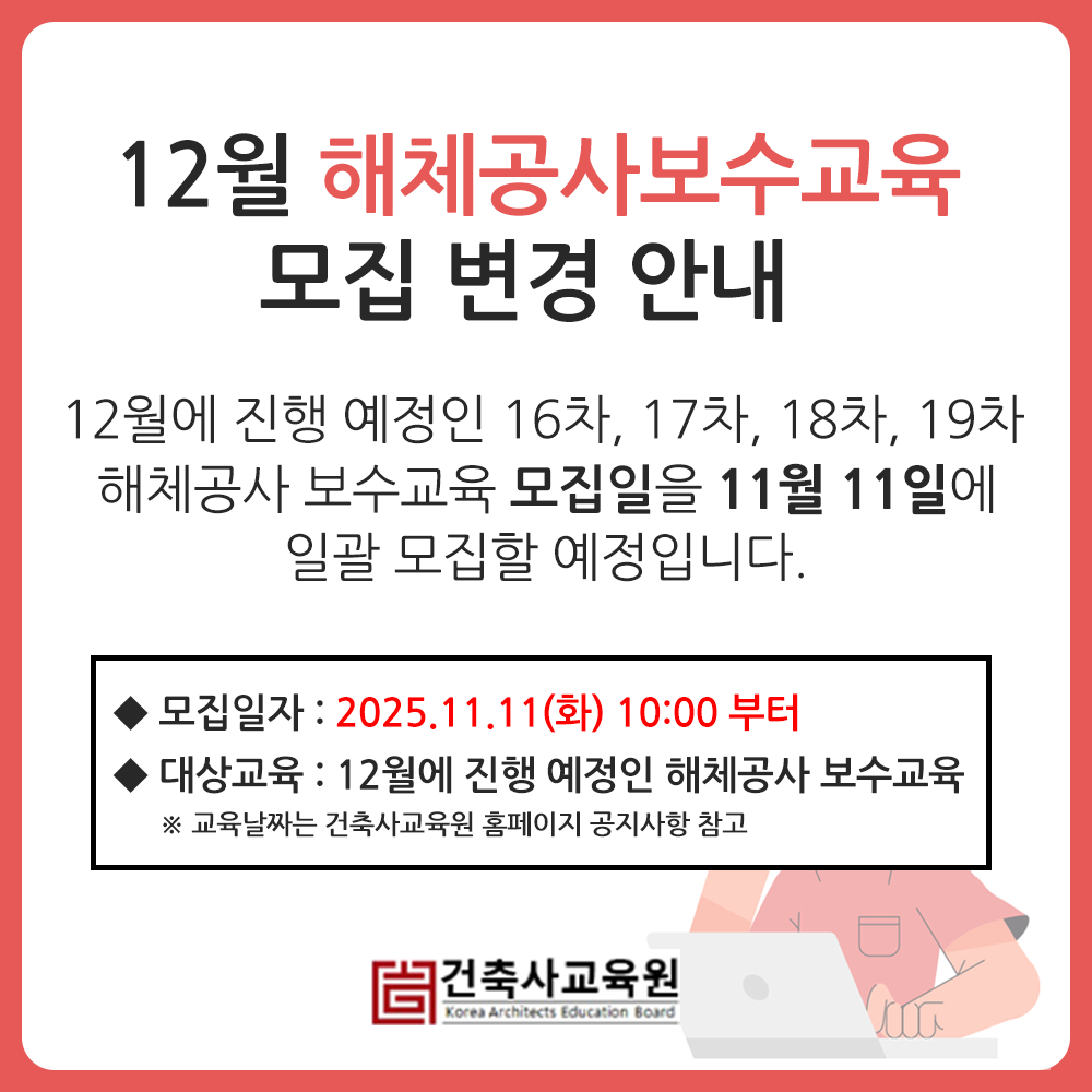 12월 해체공사감리 보수교육 모집일정 변경공고