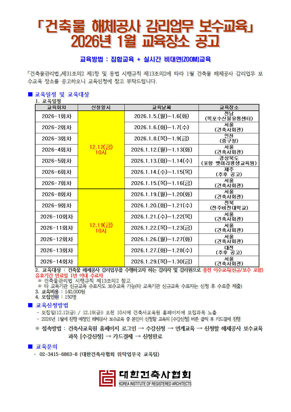 2026년 해체공사감리 보수교육 1월 교육 모집 및 장소공고