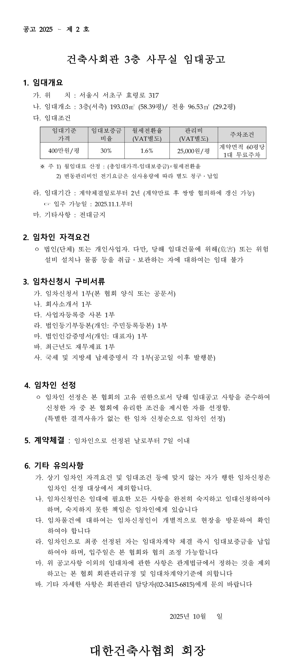 발주처 입찰공지 > 협회 > 대한건축사협회