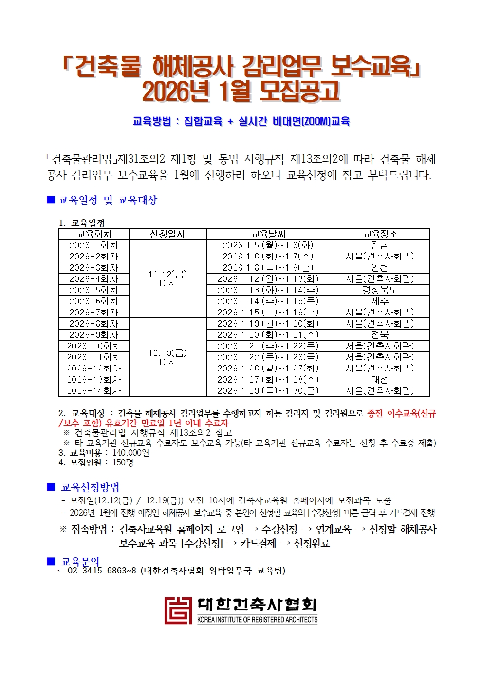 2026년 해체공사감리 보수교육 1월 교육 모집공고