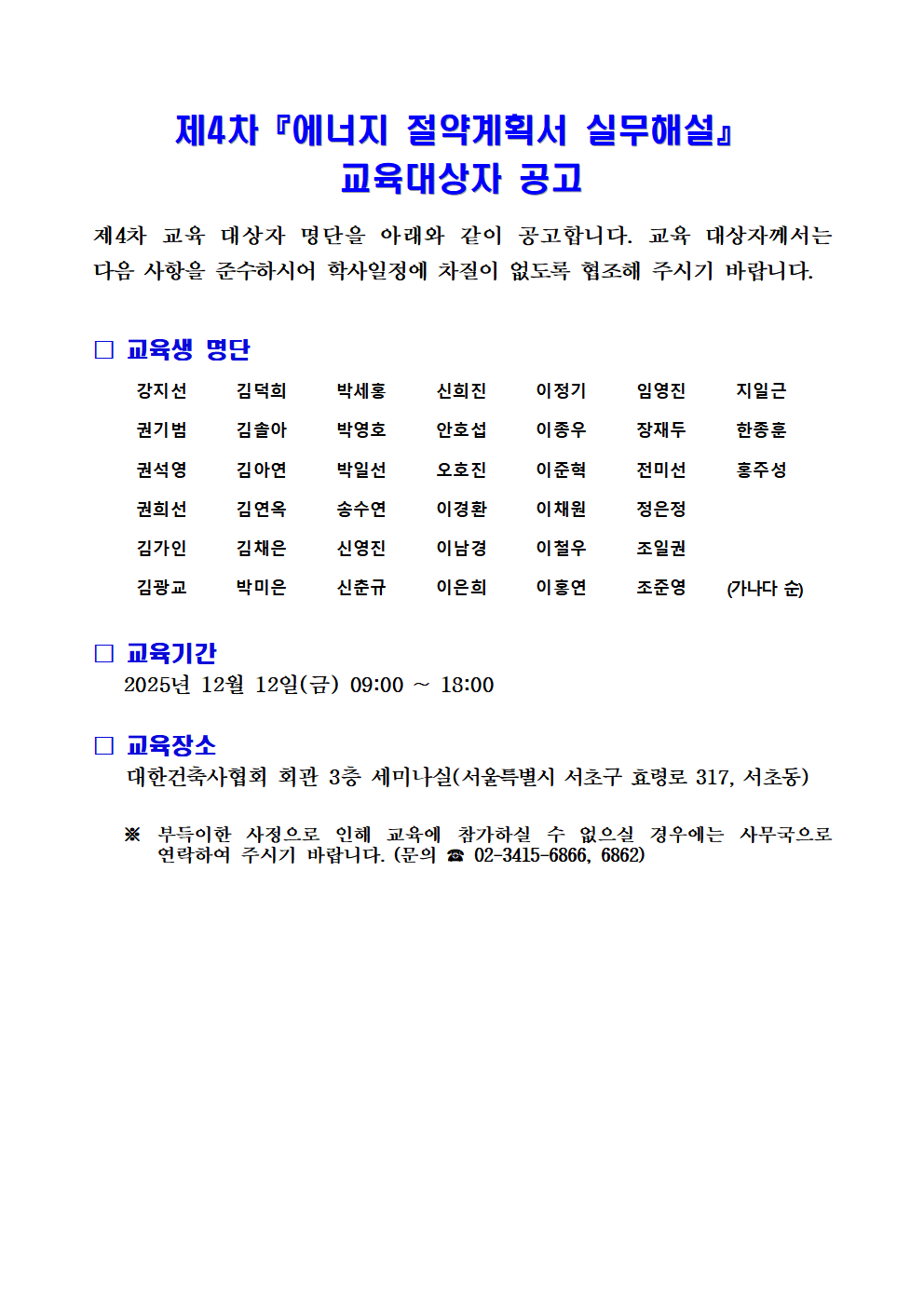 제4차『에너지 절약계획서 실무해설』 교육대상자 공고