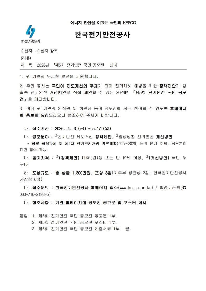 [붙임1] 제5회 전기안전 국민 공모전 공고문.hwpx