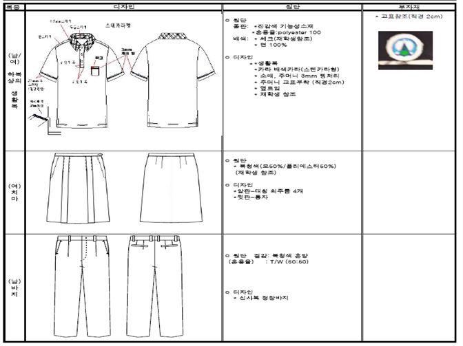 ● 동명중학교 교복 제작 사양서(붙임 1) 참조