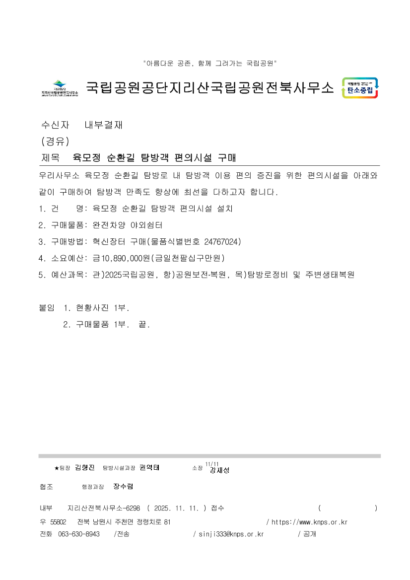 육모정 순환길 탐방객 편의시설 구매 |