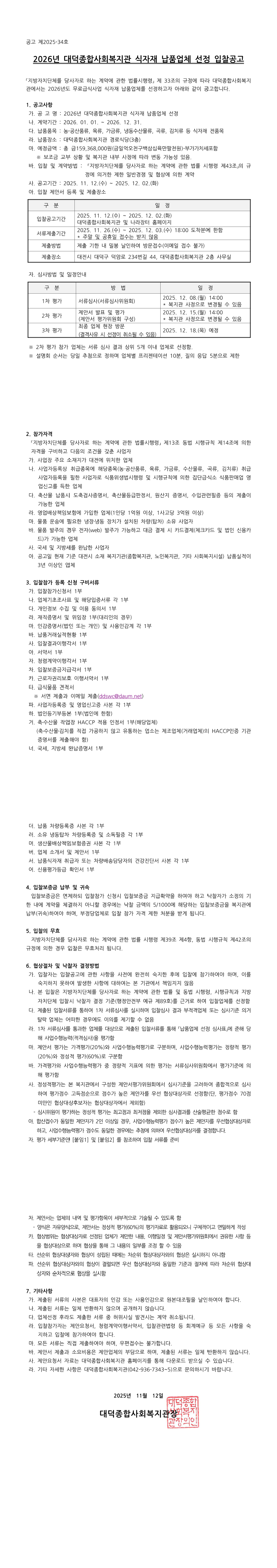 2026년 대덕종합사회복지관 식자재 납품업체 선정 |