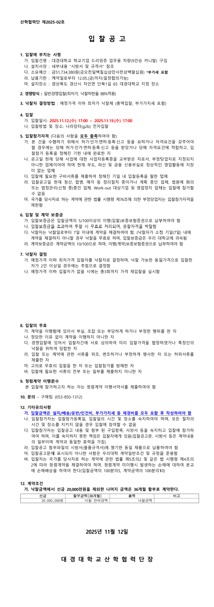 대경대학교 학교기업 드리밍쥬 업무용 차량(9인승 카니발) 구입 |