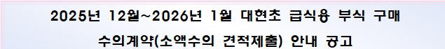 대현초 급식용 부식구매 소액수의 견적제출 공고