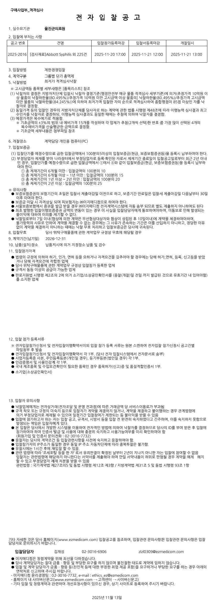 울진군의료원[검사재료]Abbott Syphilis 외 225건 |