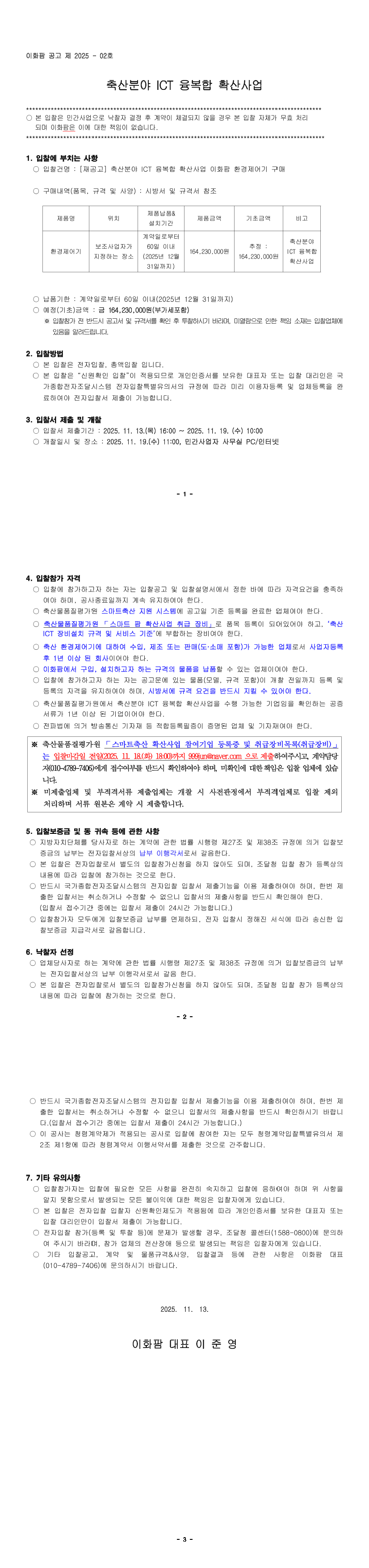 축산분야 ICT융복합 확산사업 이화팜 환경제어기 구매 |