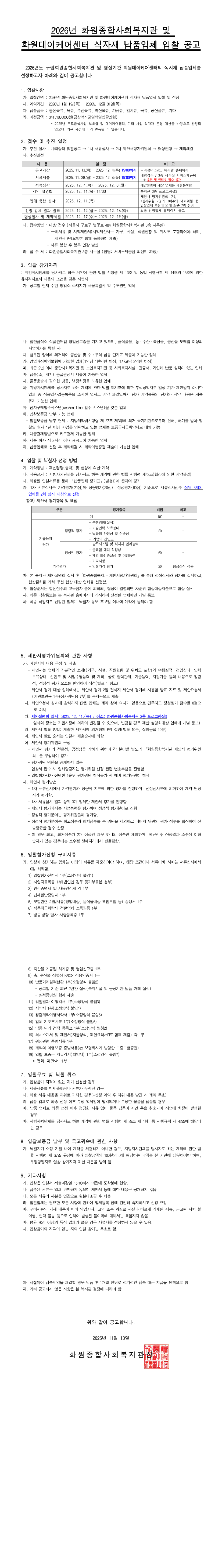 2026년 화원종합사회복지관 식자재 납품업체 입찰 공고 |